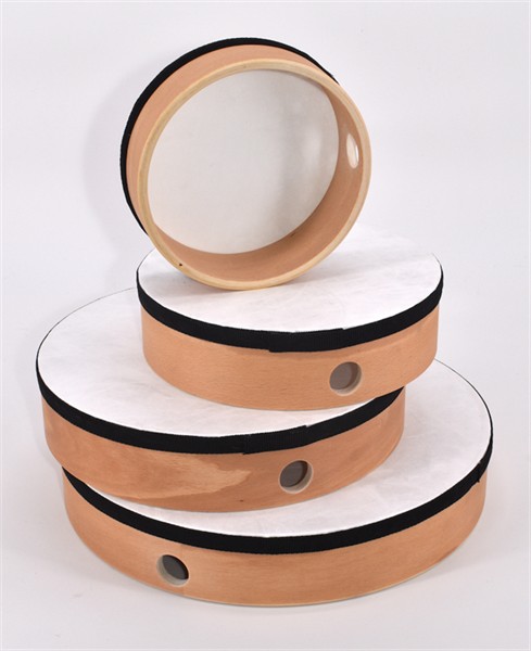 Von hoch bis tief – mit diesem ultimativen Handtrommel-Set ist der abenteuerlustige Trommler für jede Gelegenheit bestens gerüstet und auf alle musikalischen Eventualitäten vorbereitet. Die laminierte Bauweise sorgt für äußerste Stabilität und guten Klang und mit ihren abgerundeten Korpuskanten liegen diese Trommeln perfekt und sicher in der Hand. Und wenn man gerade mal nicht spielt: das attraktive helle Holz kann man auch einfach nur ansehen ...