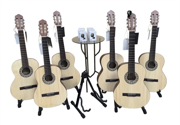 Dieses Set bietet die ideale Grundlage für einen gelungenen Einstieg in den Gitarrenunterricht. Für den Bau der Instrumente kommen ausschließlich sorgfältig getrocknete Hölzer zum Einsatz: Massive Fichte oder Zeder für die Decke sowie Nussbaum für Zargen und Boden. Dank der massiven Decken überzeugen die Gitarren durch ihren warmen, ausgewogenen Klang und ihre angenehme Spielbarkeit. Auch optisch machen sie viel Freude. Ab Werk sind alle Instrumente mit hochwertigen D’Addario XT-Saiten ausgestattet.