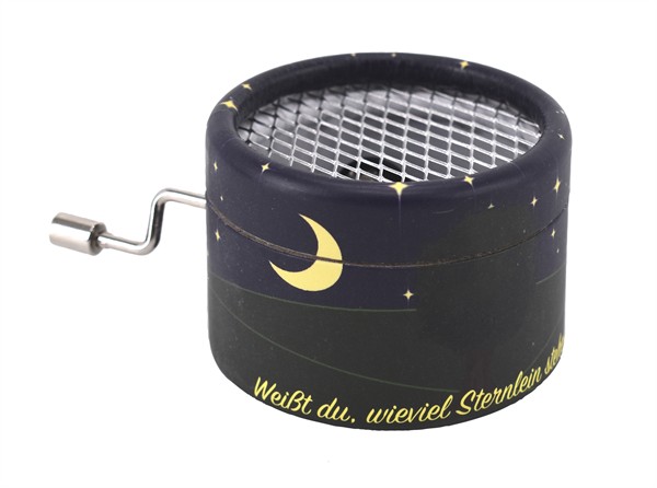 Unsere Spieluhren haben einen Durchmesser von 6 cm und eine Höhe von 4,5 cm. Die Handkurbel ist dreifach gesichert und lässt sich von kleinen und großen Fingern einfach bedienen. Das millionenfach bewährte Qualitäts-Spielwerk hat einen widerstandsfähigen Metallrahmen, doppelt verschraubte Metall-Klangzungen und ist fest und sicher auf dem Resonanzboden befestigt. Ein Metallgitter schützt die Spieluhr und ermöglicht zugleich einen ungestörten Blick auf die faszinierende Mechanik. Das umweltfreundliche, robuste Kartongehäuse schützt vor Verunreinigungen und Beschädigungen und dank des abnehmbaren Deckels ist die Reinigung unserer Spieluhren kinderleicht.