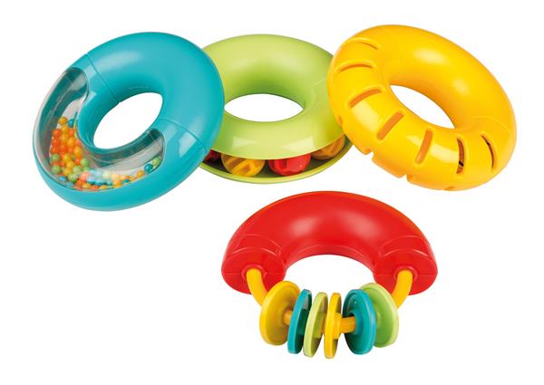 Mit diesen vier bunten Ringen erforschen kleine Entdecker stundenlang die faszinierende Welt von Farbe, Bewegung und Klang und entwickeln dabei Feinmotorik und Koordinationsvermögen.