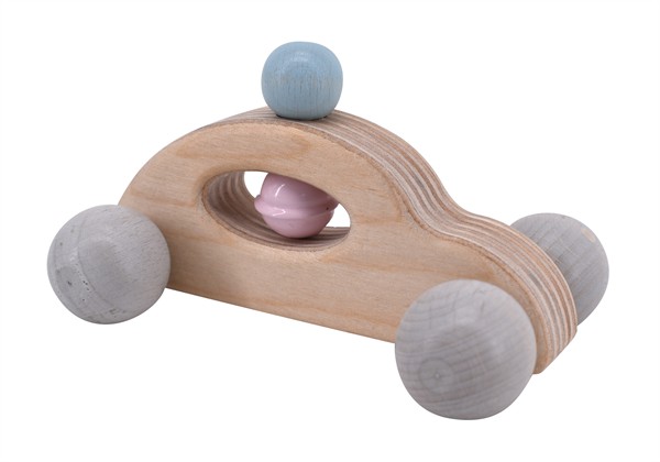 Dieses Auto macht mit seiner handsympathischen Form richtig Spaß beim Fahren und das stabile mehrfach verleimte Schichtholz übersteht auch die härteste Kinderzimmer-Rallye. Beim Schütteln oder Fahren klingelt das Glöckchen fröhlich und mit Geschwindigkeiten von unter 0.25km/h bleibt unser Rolli-Auto immer im sicheren Bereich.