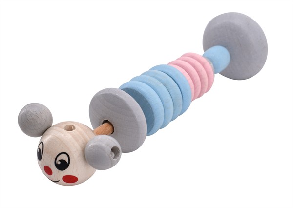 Der lächelnde kleine Spielgefährte für das Kinderzimmer! Wird die Rappel-Raupe geschüttelt, rattern ihre farbigen Holzscheiben freundlich hin und her und wenn die Raupe schläft, können kleine Hände ihre Ringe befühlen, verschieben und tastend erkunden.