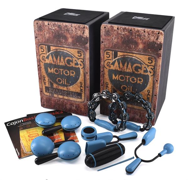Die beiden in Spanien hergestellten Cool Cajons runden dieses Rhythmik-Set ab. Bei jedem Cajon ist ein Lehrbuch mit Audio-Beispielen und ein Sitzpad enthalten.