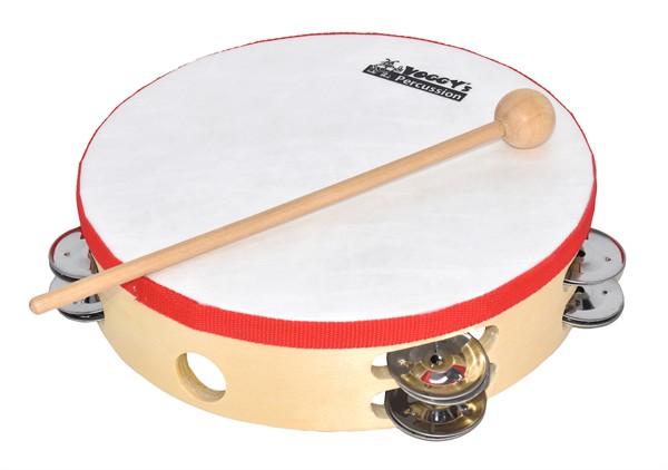Mit diesem Tamburin darf nach Herzenslust und -laune getrommelt, geschüttelt und geklingelt werden, bis die Eltern die Notbremse ziehen! Das unverwüstliche Kunststoff-Fell widersteht auch härterem Einsatz und dank des praktischen Grifflochs liegt das Tamburin gut in der Hand. Mit der flachen Hand geschlagen, mit dem Schlägel gespielt oder geschüttelt: Dank der angefasten Ringkante klingt Voggy’s Tamburin mit seinen 12 Schellenpaare immer kräftig und klar!