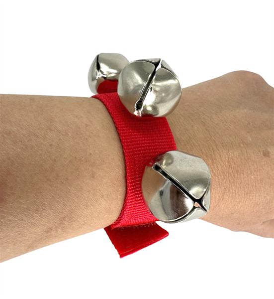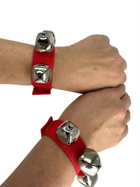 Die beiden Armbänder aus strapazierfähigem Nylon-Material mit 4 gutklingenden Glöckchen können durch den Kletttverschluss indivuell auf die Armgröße des Kindes angepasst werden.