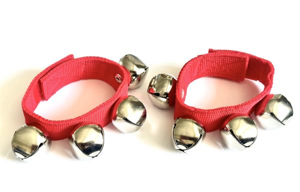 Die beiden Armbänder aus strapazierfähigem Nylon-Material mit 4 gutklingenden Glöckchen können durch den Kletttverschluss indivuell auf die Armgröße des Kindes angepasst werden.