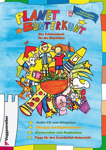 „Wen allein das blanke Notenblatt abschreckt, braucht manchmal einfach fantasievolle Anregungen. Die Blockflötenschule PLANET BUNTERKUNT ist kunterbunt, fantasievoll und anregend, ... ist eine Notensammlung, ein Erzählband und ein Handlungsbuch in einem. Zwei Schwierigkeitsgrade bieten Kindern mit unterschiedlichen Fähigkeiten abgestufte Übungen. Die Audio-CD enthält alle Musikstücke mit Playback zum Mitspielen.“